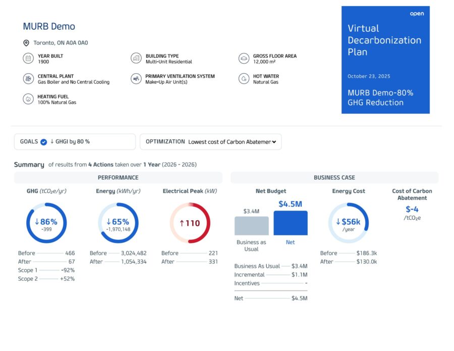Our offering addresses a central challenge on the path to net zero by streamlining early diagnostics and planning, saving time, costs, and engineering resources. By virtualizing portfolio-level and coarse building-level assessments, professionals can allocate resources more efficiently for detailed planning and retrofit implementation.